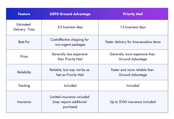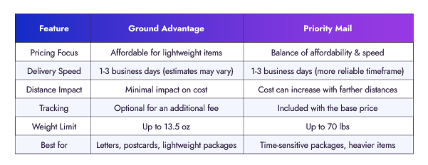 Processing: Ground Advantage prioritizes affordability and may take a bit longer for initial processing compared to Priority Mail.