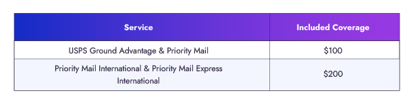 - Included Coverage: $100 of insurance is automatically included in the base price of USPS Ground Advantage.