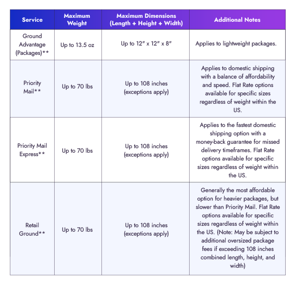 - Size restrictions: Packages must meet size limitations set by USPS for this service.